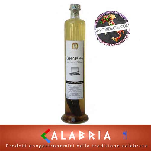 Grappa ottenuta dalla distillazione artigianale di sincere vinacce d'uva ,aromatizzata con la radice di liquirizia calabrese che rilascia nella grappa il piacevole gusto addolcendola.
