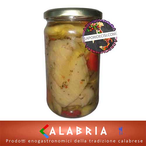 Ingredienti: melanzane a fetta, olio di semi di gira sole, sale, aceto, prezzemolo, aglio, origano, peperoni, peperoncino piccante